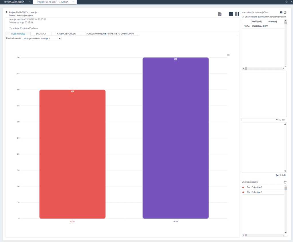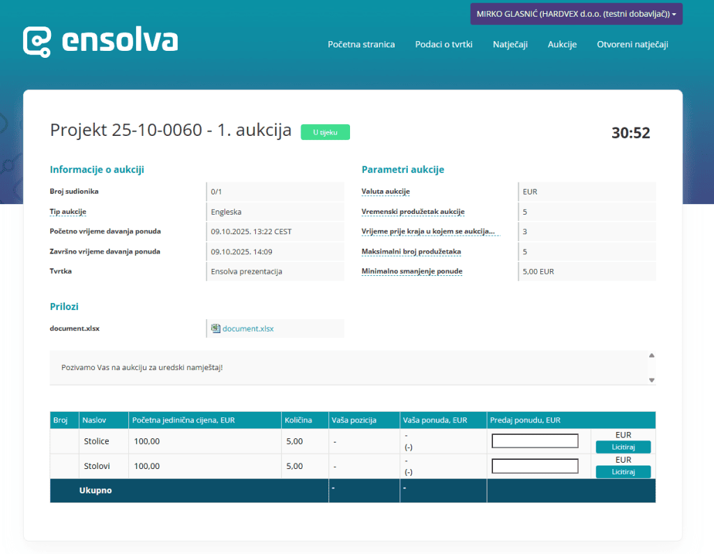 - Tijekom trajanja aukcije, svim sudionicima na ekranu je prikazano preostalo vrijeme.