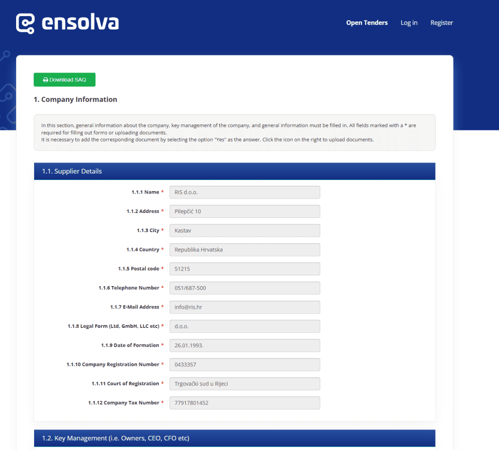 Suppliers also benefit from the simplified SAQ completion process via Ensolva. Instead of manually filling in and sending documents by email, they can simply click a link to access a web form. This makes providing the required information much more practical and convenient.